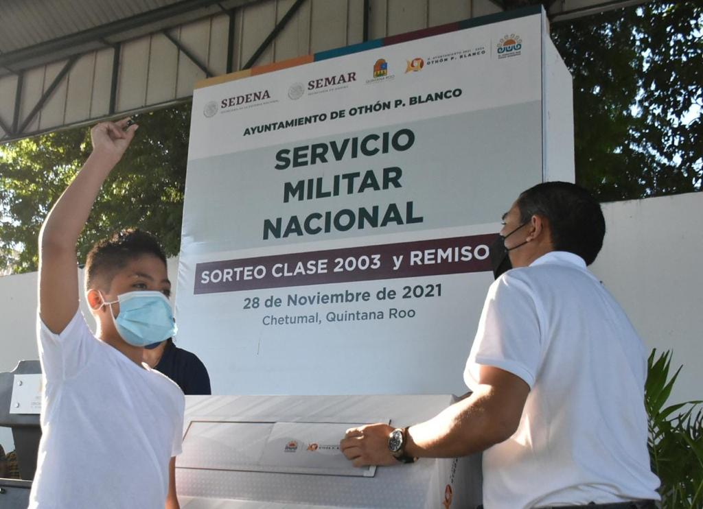 Cabe mencionar que, a través de la junta municipal de reclutamiento, el Ayuntamiento de la transformación auxilia en la coordinación del proceso del servicio militar que realiza la SEDENA con la 34 zona en Chetumal y se retoma el sorteo a partir de este año tras una suspensión en 2020 debido a la Pandemia por COVID19, cuando toda la clase 2002 liberó su servicio automáticamente.