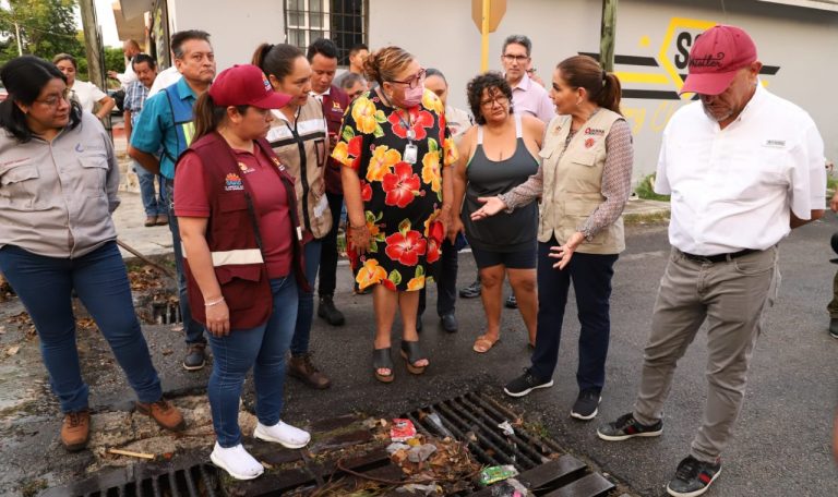 La presidenta municipal othonense garantizó la atención a los 56 puntos críticos de inundaciones en Chetumal, los cuales ya son atendidos de la mano de los órdenes de gobierno, como el caso de la calle Belmopán en el fraccionamiento “El Centenario”, sitio donde los reportes son frecuentes.