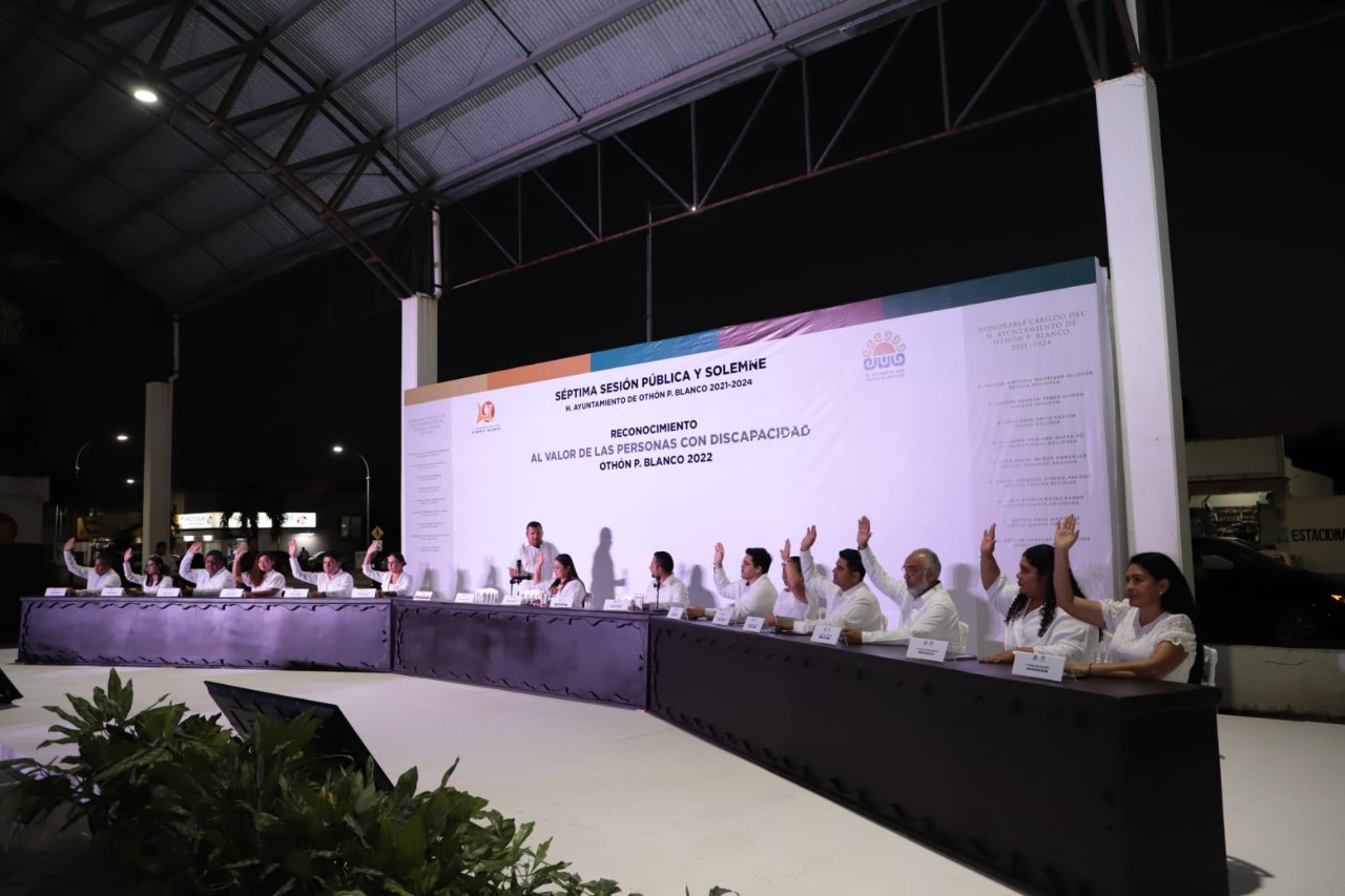 Celebrado en el domo del parque “Lázaro Cárdenas”, conocido como la “Alameda”, con motivo del Día Internacional de las Personas con Discapacidad, este lunes por la tarde-noche, en la Séptima Sesión Pública y Solemne, la presidenta municipal encabezó el reconocimiento a las trayectorias de María José Trejo Rosales y Fernely Neftaly Aguilar quienes han demostrado solidaridad y propuestas en beneficio de dicho sector de la población.