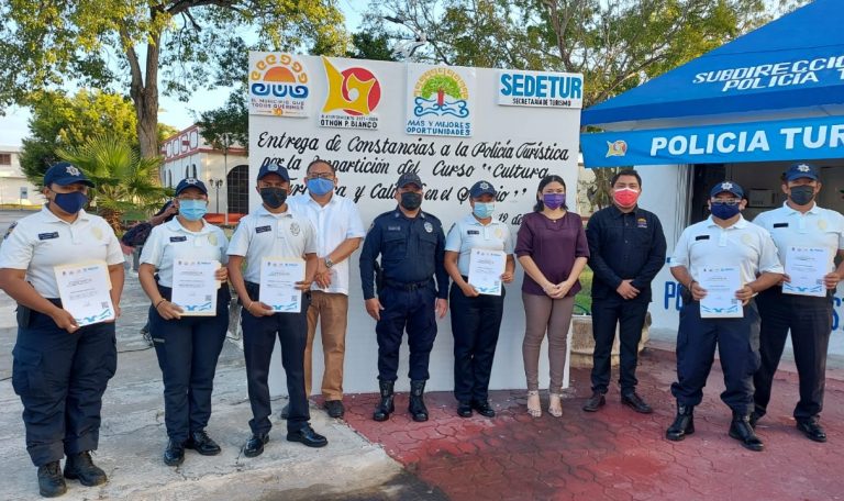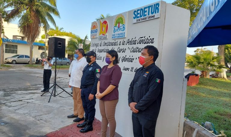 En evento que se llevó a cabo en la caseta de seguridad pública ubicada en el histórico parque de Los Caimanes, el funcionario municipal en representación de la presidenta Yensunni Martínez, agradeció el apoyo de la secretaría de turismo del estado de Quintana Roo para la realización de estos cursos de capacitación.
