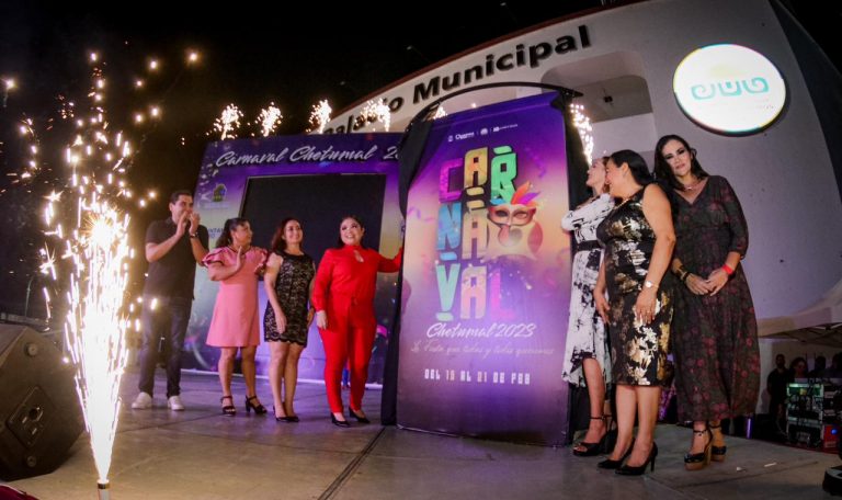 Este martes por la noche, la edil othonense, ante más de 1000 personas en la planta baja de palacio municipal, hizo la develación de la imagen oficial del Carnaval Chetumal 2023; la presentación de cartelera de los artistas que es con el esfuerzo de la gobernadora de Quintana Roo, Mara Lezama Espinosa; las convocatorias para los reyes y las diversas categorías participantes; la carrera “Run Colors”; y el baile mixto a realizarse el 10 de febrero.