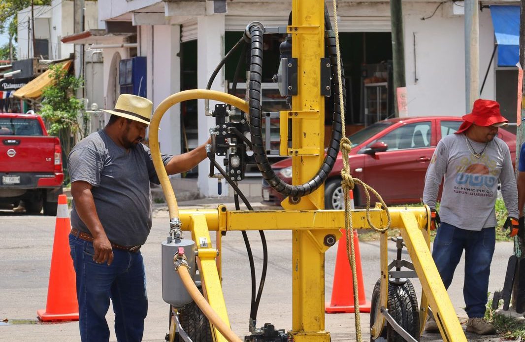 Chetumal, 16 de abril. Ante la próxima temporada de lluvias, la presidenta municipal, Yensunni Martínez Hernández, ha puesto en marcha trabajos de prevención mediante la limpieza y el desazolve de pozos de absorción del sistema de drenaje pluvial, utilizando maquinaria especializada tipo drill, recientemente adquirida y operada por personal capacitado.